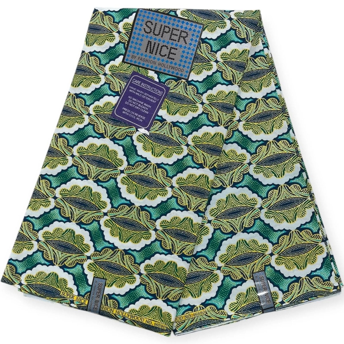 Super Nice Shiny Wax Print Fabric 6 Yards - Green and Gold