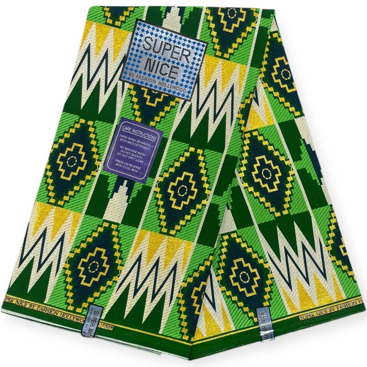 Super Nice Shiny Wax Print Fabric 6 Yards - Green and Gold