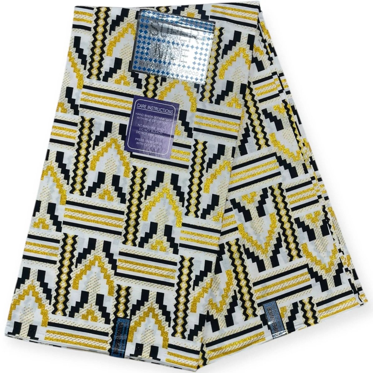 Tessuto stampato a cera super lucido, 6 iarde - Bianco, nero e oro