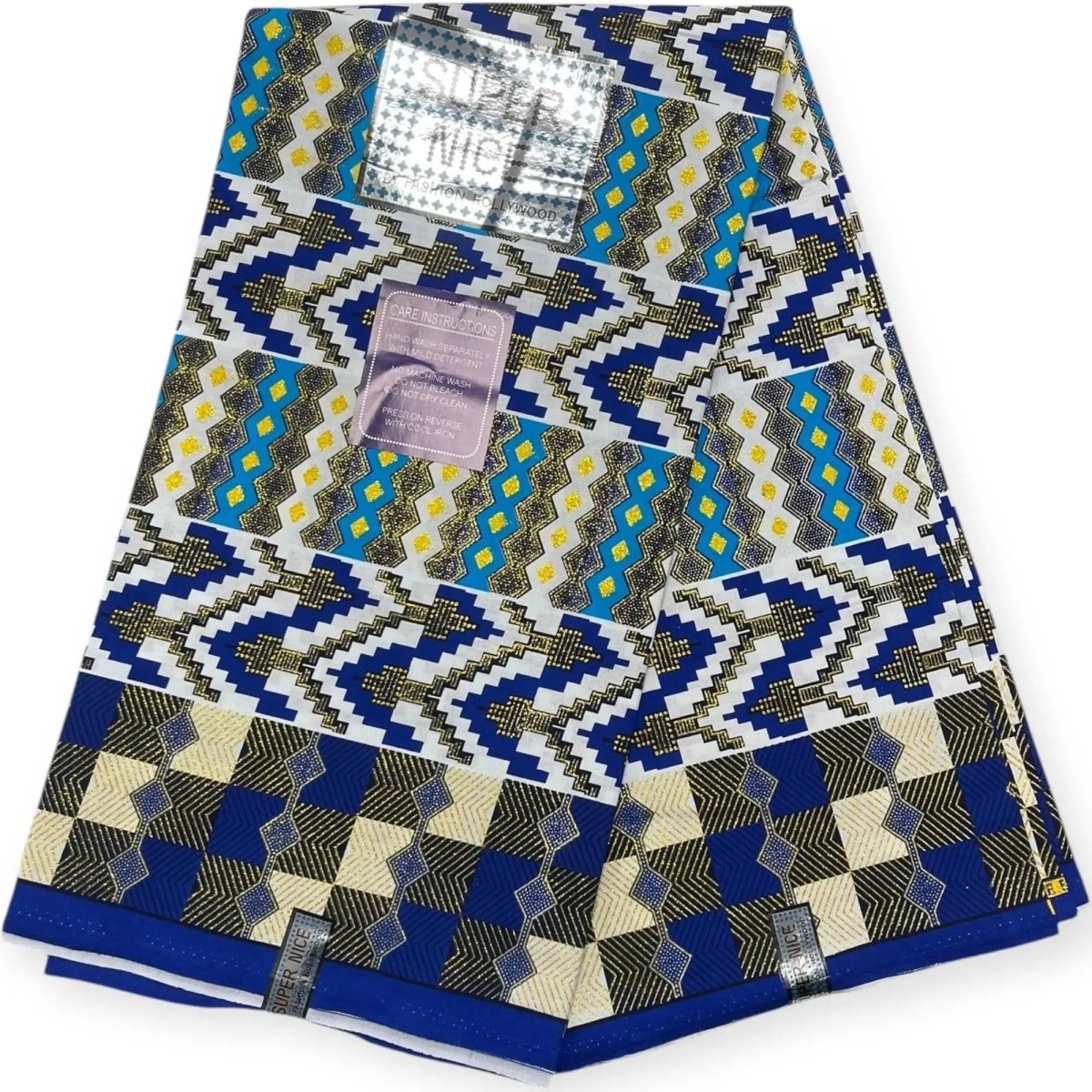 Tessuto stampato a cera super lucido, 6 iarde - Blu e oro