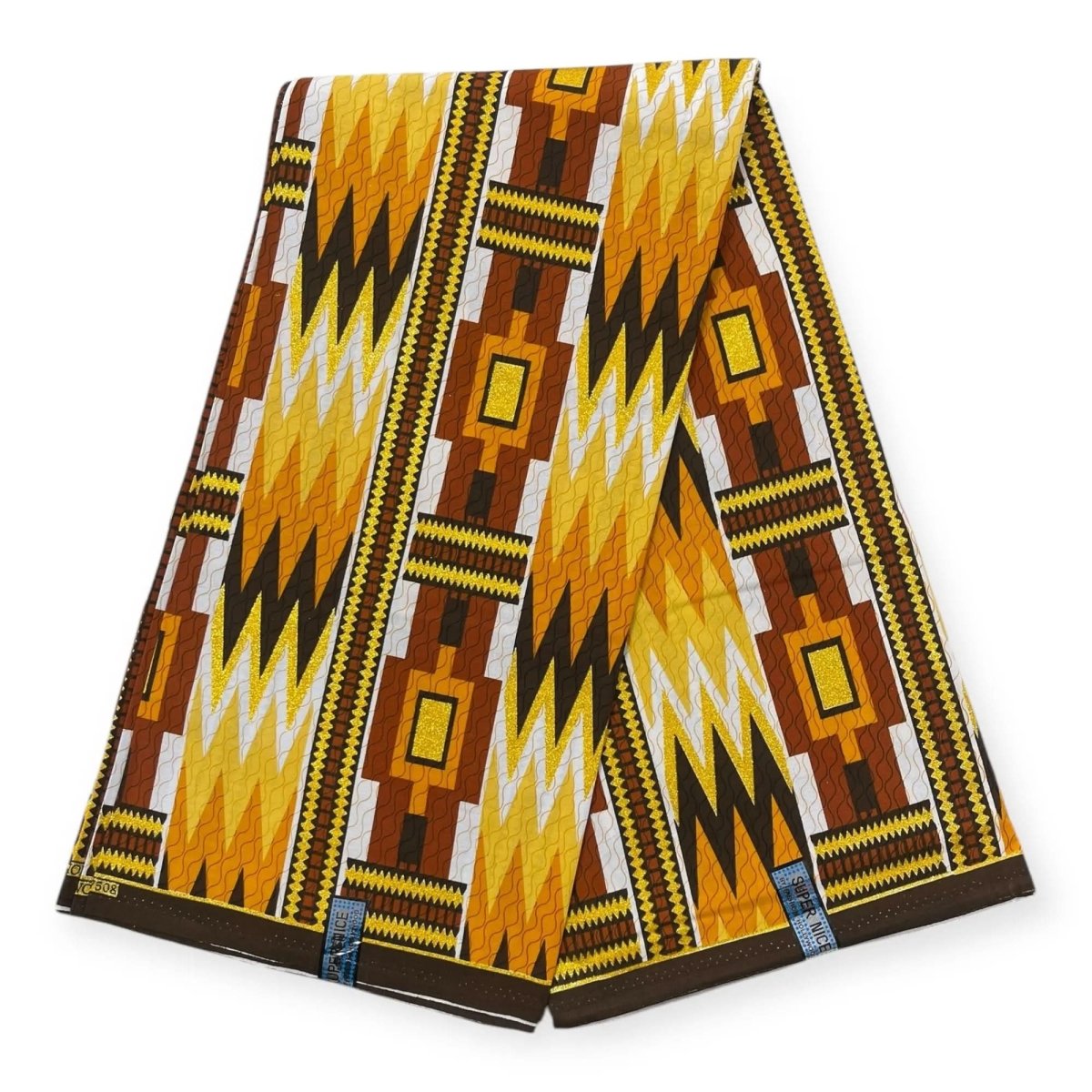 Tessuto stampato a cera super lucido, 6 iarde - Marrone e oro