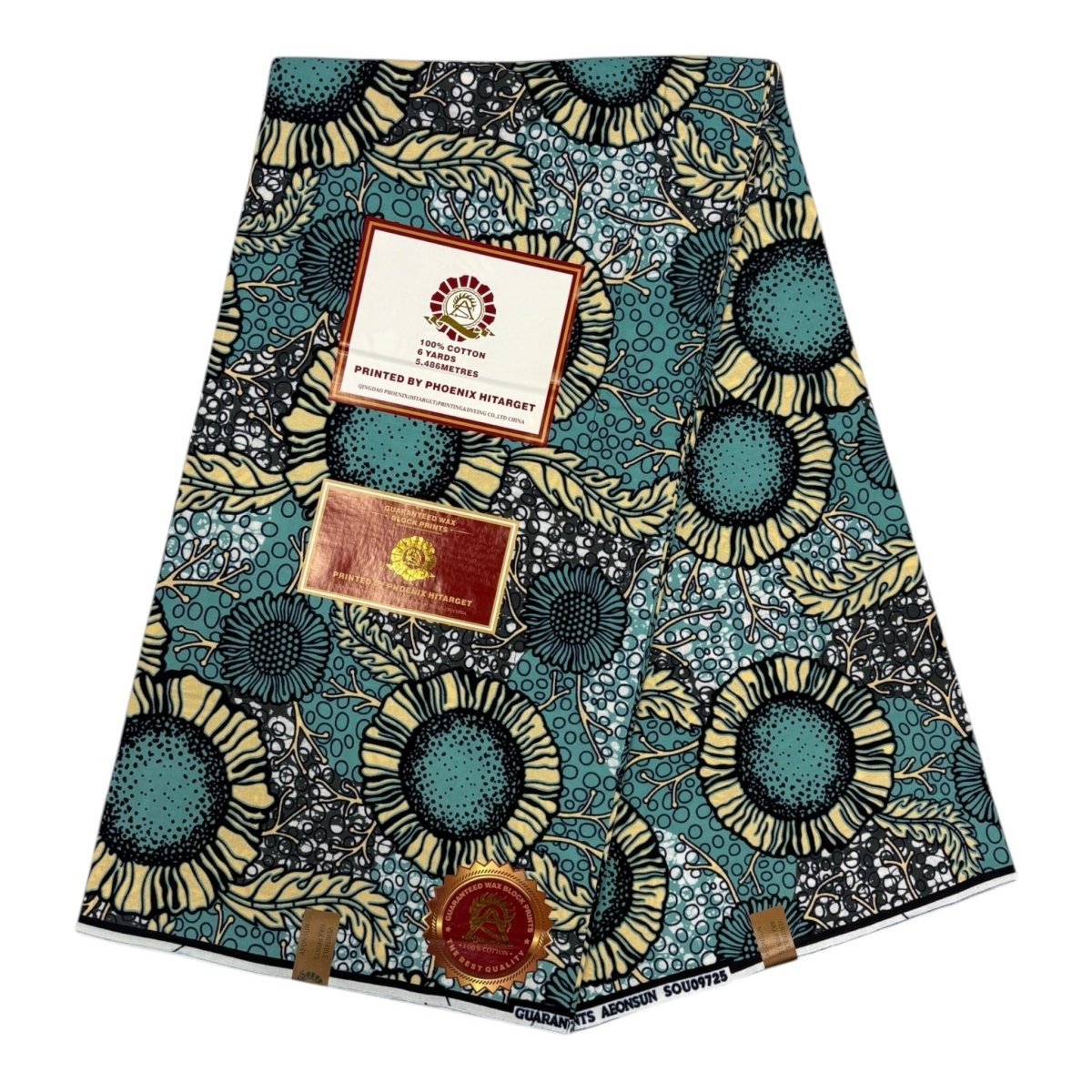 Tissu Wax Turquoise Hitarget - Pagne 6 Yards 100% Coton