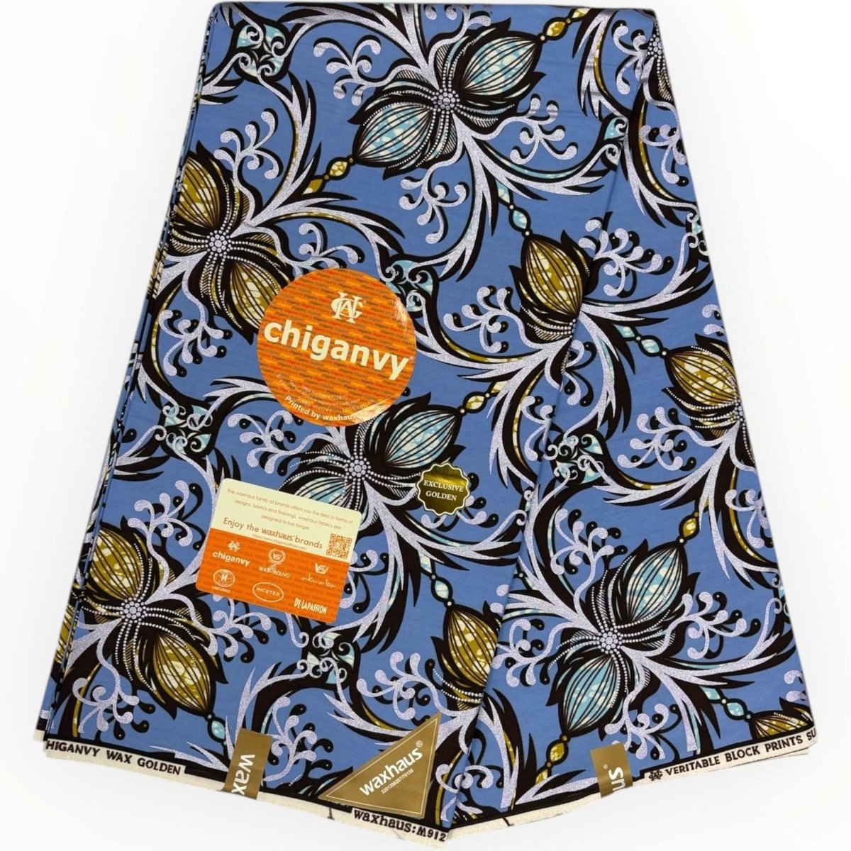 Wax Demi Super Chiganvy Brillant 6 Yards - 100% Coton - Bleu