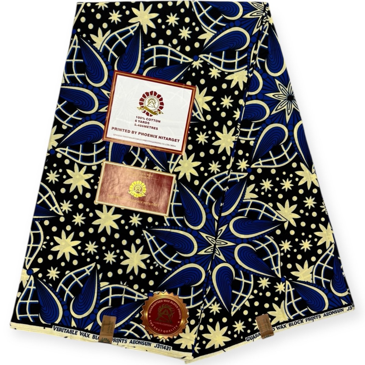 Wax Hitarget 6 Yards - 100% Coton - Bleu et Beige
